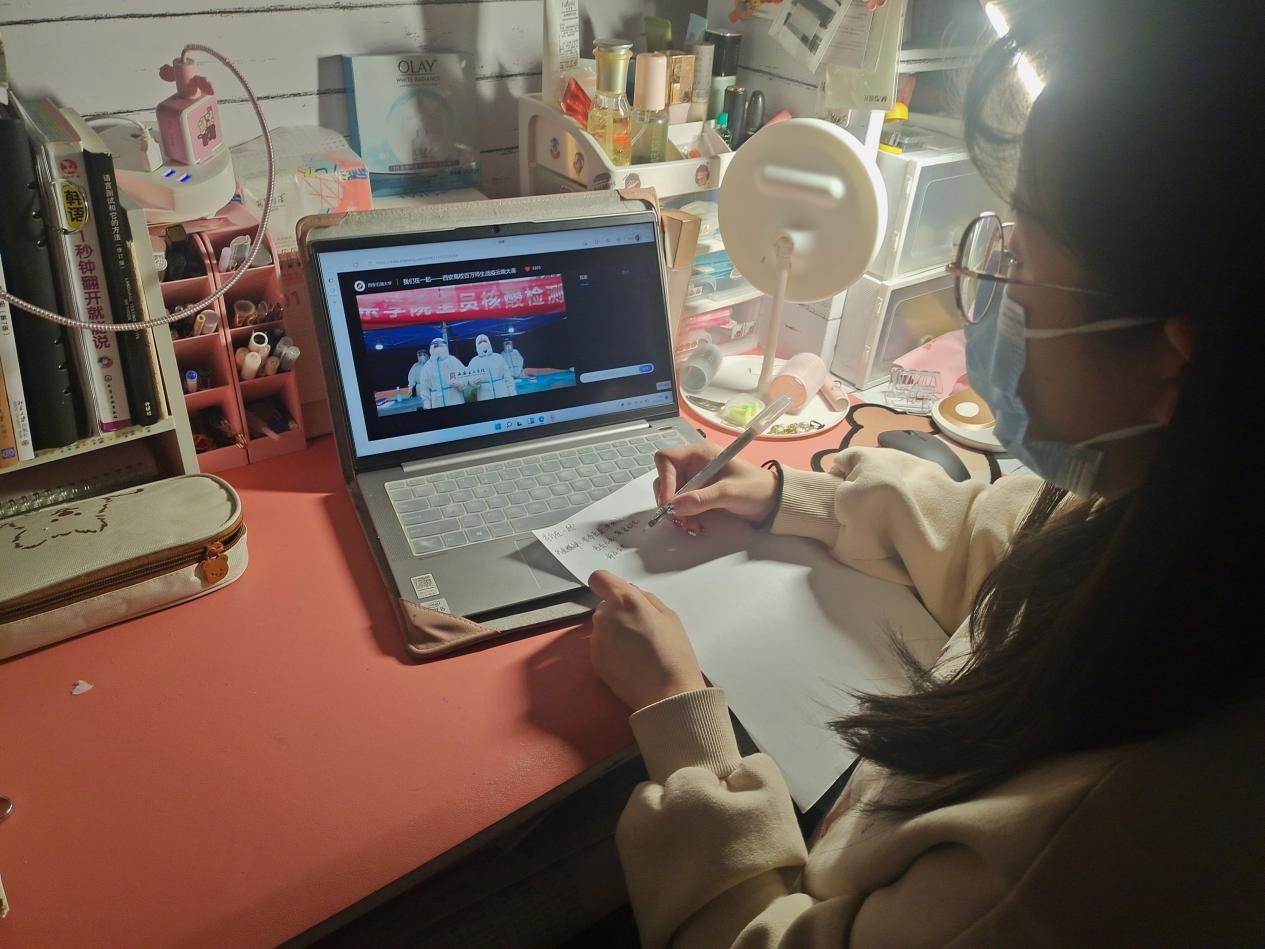地球科学与工程学院油气田开发地质专业2020级硕士研究生胡晨辉说,西安突发疫情,学校在第一时间进行了封校管理,进行核酸检测,切实保护同学们的安全,保障我们的生活和学习正常有序进行。我也看到了同学们积极配合学校的各项防疫措施和安排,也积极投入到了防疫志愿者的队伍当中。当看到学校招募志愿者,我们院几乎所有同学都第一时间报名的时候,我就坚信我们一定会迅速战胜疫情。我自己也参与了志愿者活动,当穿上防护服的时候才真正切身体会到医护人员的不容易。疫情虽然无情,但是通过疫情,又能让我们紧紧地团结在一起,同呼吸,共命运,更能体现我们中国人团结一致、坚韧不屈的精神。