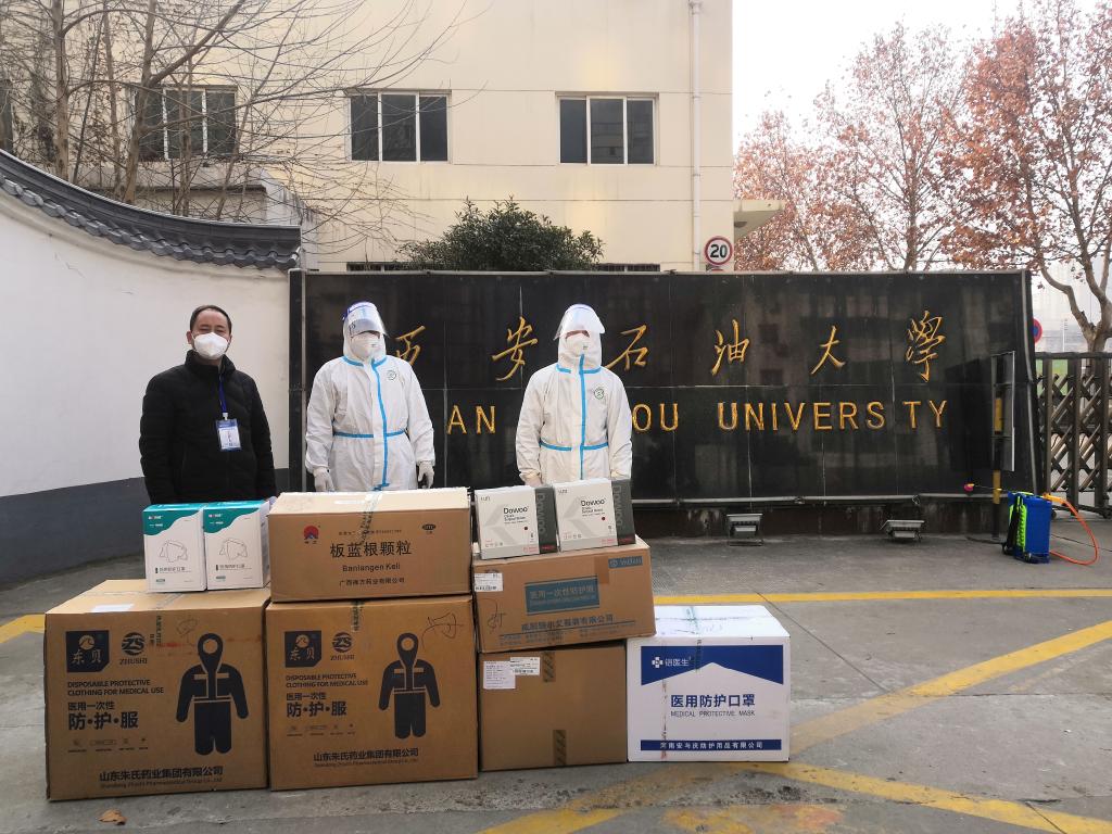 面对此次新冠肺炎疫情,宝石花物业坚持“争做有温度、有情怀、有责任、有追求的大物业公司”发展理念,千方百计从北京调配各类医疗防疫物资、生活保障物资,开足马力支援西安、咸阳近50000户居民医疗生活保障。此次捐赠,学校共收到隔离防护服100件、一次性口罩12000只、一次性手套500双、隔离面罩400只、爱心蔬菜2000箱。
