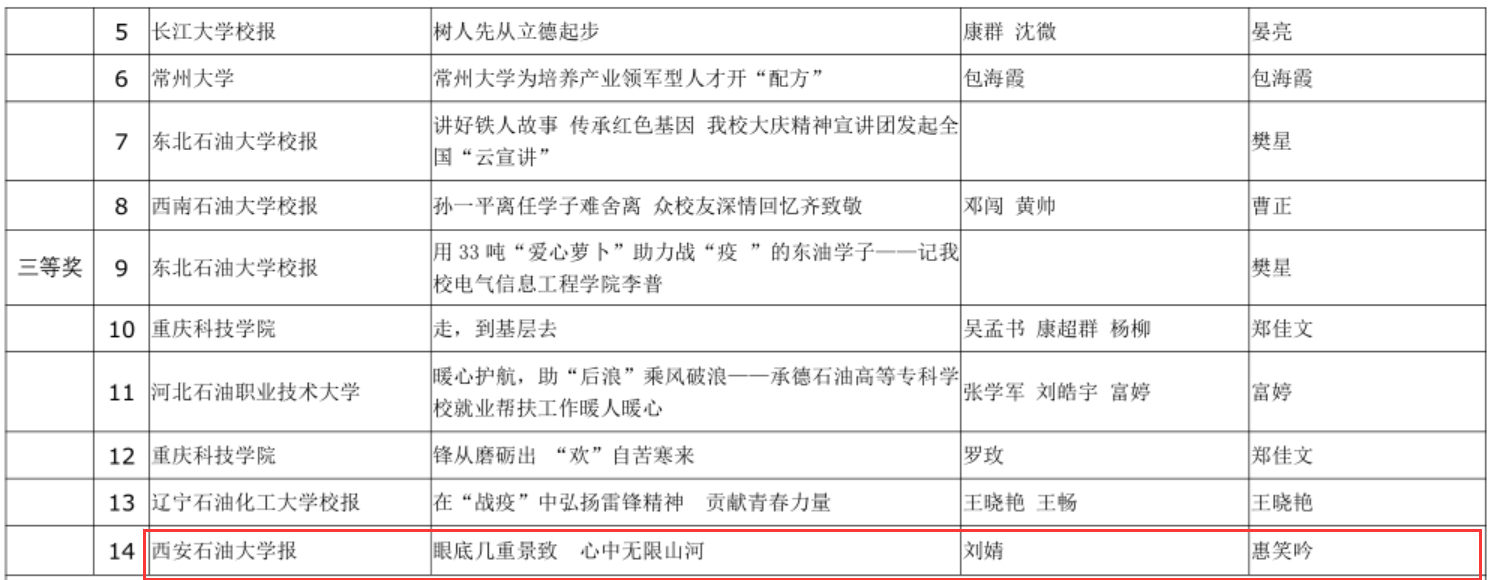 近日,中国石油新闻工作者协会公布了2020年度中国石油优秀新闻作品奖获奖名单,beat3652件校报作品分获通讯类一等奖和三等奖。