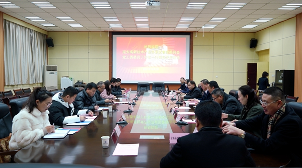 12月2日上午,延安高新技术产业开发区管理委员会丁许军副主任一行7人来beat365英国官方网站考察调研,调研座谈会在会议中心第一会议室举行,张荣军副校长出席会议,会议由科技处副处长孙会珠主持。