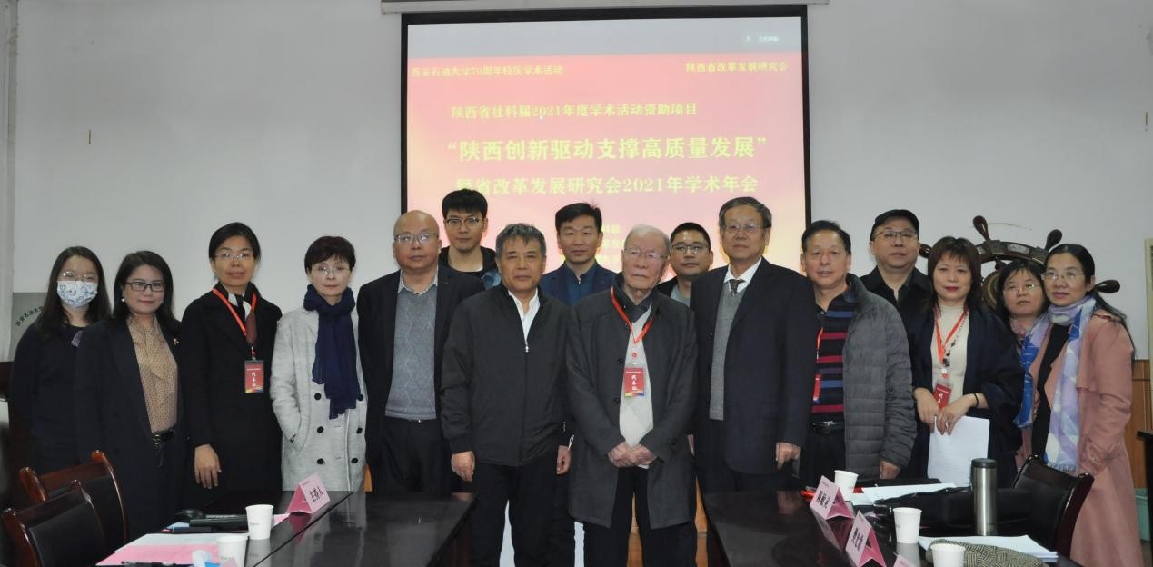 11月12日,庆祝建校70周年系列活动“陕西创新驱动支撑高质量发展”暨省改革发展研究会2021年学术年会在beat365雁塔校区东方石油楼1507会议室召开,会议采取网络同步直播形式,便于场外人士收听和互动。本次会议由陕西省社科联、陕西省改革发展研究会主办,beat365经济管理学院和社科联承办。beat365总会计师樊晓民,陕西省社会科学界联合会学会部部长张金高,陕西省改革发展研究会长曾昭宁出席会议,陕西省改革发展研究会专家顾问、会员等高校学者20余人参加现场会议,280余人在线参加会议。陕西省改革发展研究会常务副会长、beat365经济管理学院院长王君萍主持开幕式。