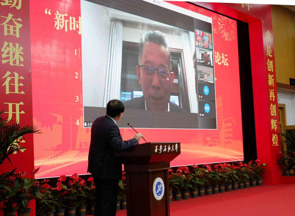 英国密德萨斯大学副校长Carole-Anne Upton教授作了题为《大学生的国际交流与文化碰撞》的报告;印度NIIT集团全球副总裁、大中华区总裁Kamal Dhuper先生作了题为《面向高校和企业的管理培训服务》的报告;中国科学院院士高德利教授作了题为《“双碳”战略与非常规能矿绿色开发之道》的报告;中国科学院院士邹才能教授级高级工程师作了题为《碳中和目标与中国能源转型》的报告;陕西延长石油(集团)有限责任公司副总经理、总地质师,beat365杰出校友王香增教授级高级工程师作了题为《延长石油非常规油气勘探开发理论与关键技术》的报告;中国石油长庆油田分公司副总经理付金华教授级高级工程师作了题为《鄂尔多斯盆地油气勘探进展与发展前景》的报告;西安科技大学校长来兴平教授作了题为《碳中和背景下能源安全的时代呼唤》的报告。各位专家学者从高等教育发展、大学生国际交流与合作、碳达峰碳中和战略和能源转型、非常规能矿绿色开发、“卡脖子”关键技术等方面作了精彩报告。