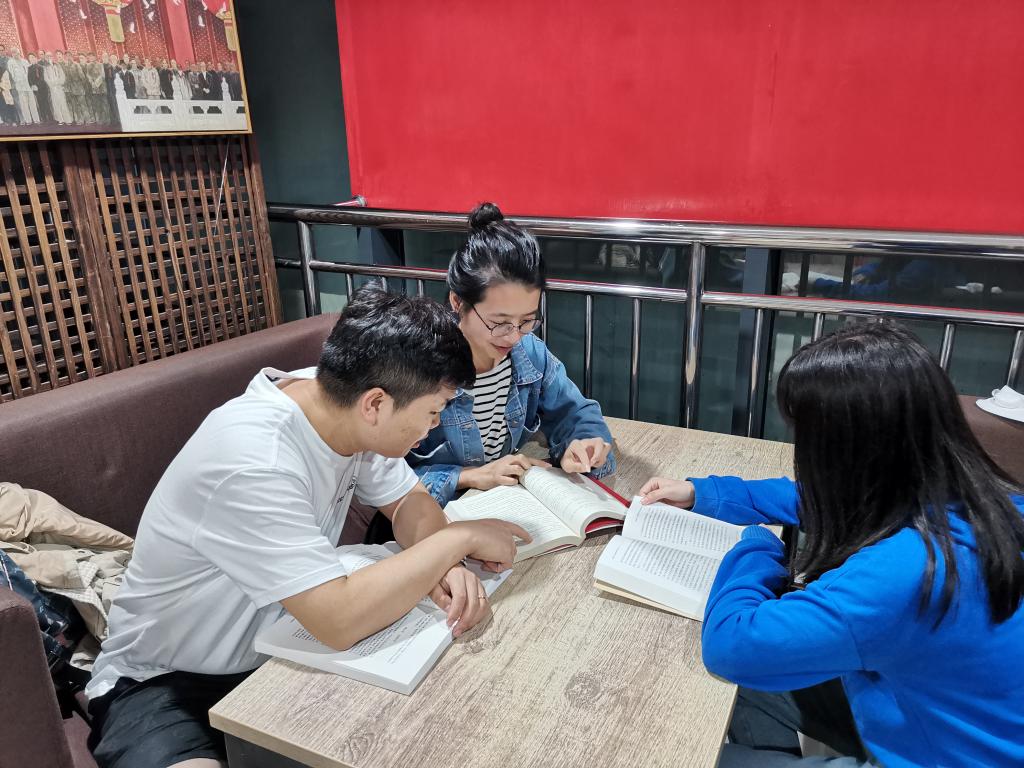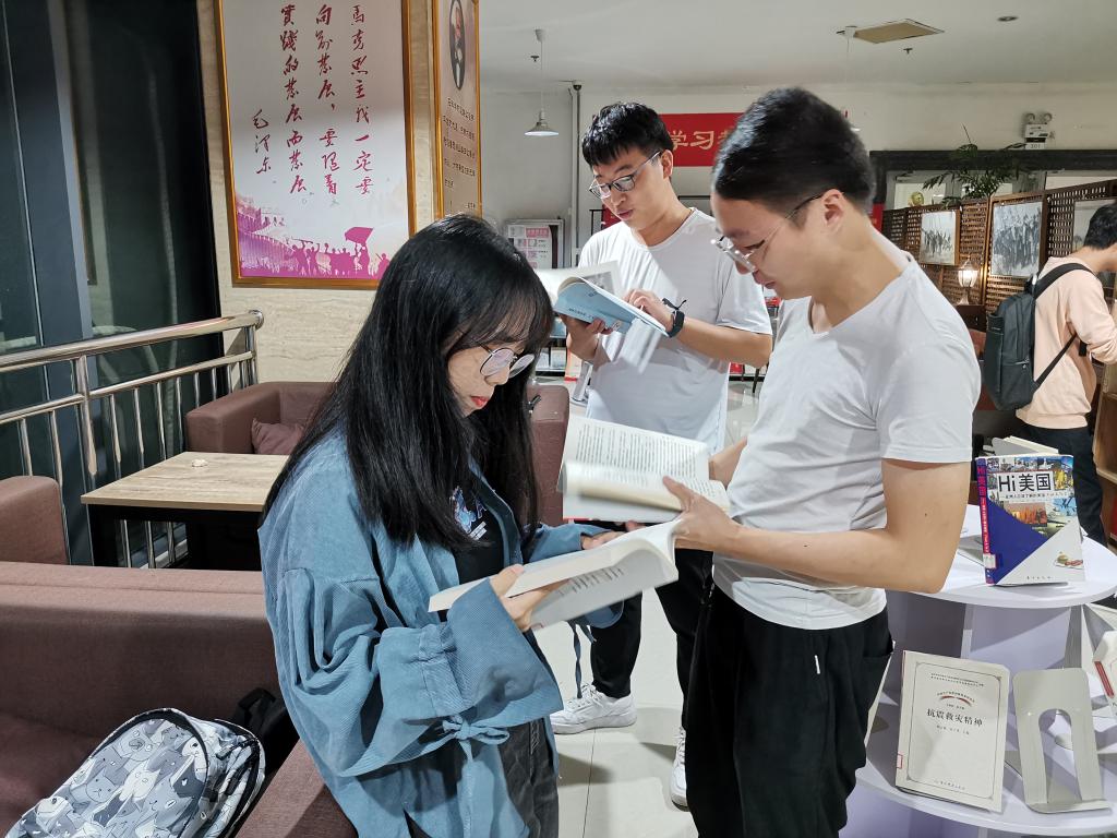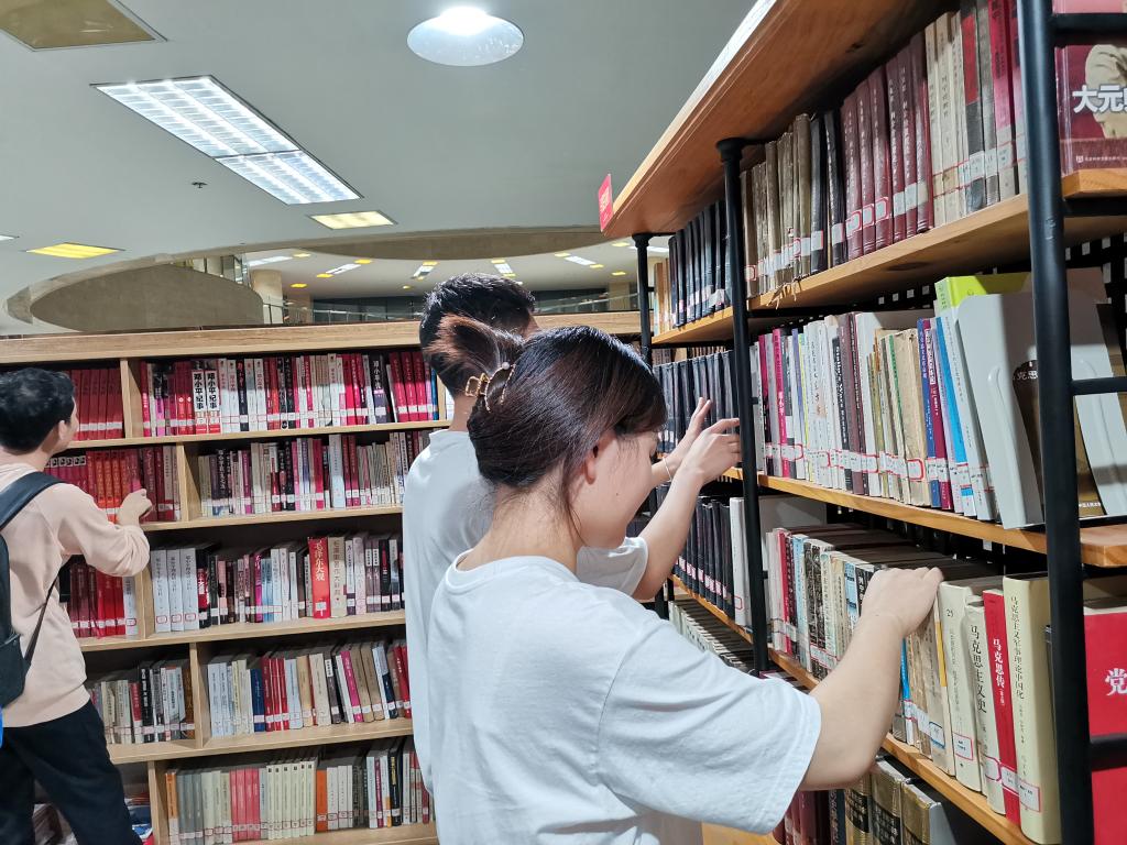 国庆期间,马克思主义学院研究生在鄠邑校区图书馆马列书屋帮助整理书籍,并开展读书研讨活动。学院研究生辅导员童玲老师参与指导,全体留校的2021级研究生参加了此次整理分享交流活动。“马列书屋”是beat365具有代表性的学习马克思主义教育基地,书屋内陈列着经典著作以及多个国家不同时期众多学者对马克思主义、马克思主义中国化的著作共500余册。另有中国共产党思想理论资源数据库、中国社会科学文库等11个数据库,包含有关马列的电子图书4060册及近1.69万篇有关马列的论文(电子版)可供师生学习使用。沉浸式的VR体验、丰富的文献资料,极大地帮助了师生实现自我教育和自我提高,为研究生学习马克思主义打造了坚实的基础。