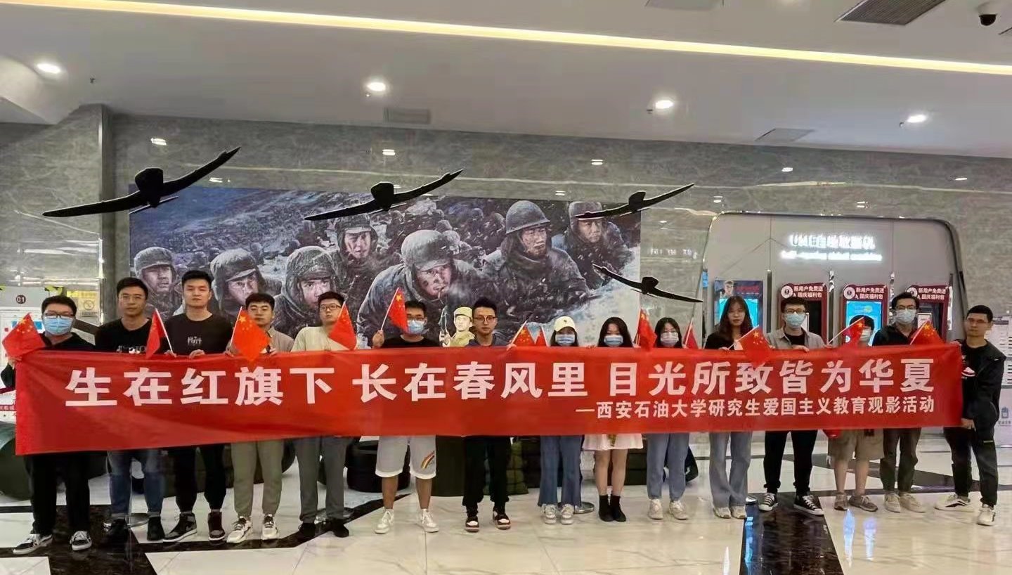 10月2日下午,研究生工作部组织研究生党员干部开展“生在红旗下,长在春风里,目光所致皆为华夏”爱国主义教育观影活动,共同观看了以抗美援朝为背景的电影《长津湖》。宏大的战争场面、感人的故事情节,让同学们在观影后展开了热烈的讨论。机械工程学院陈浩宇同学表示:“虽然《长津湖》更多的是作为一部商业电影呈现在大众面前,但是对于大众了解解读抗美援朝战争,进一步深入探索历史,发掘历史中比电影更感人、更振奋人心的故事和人物,有着很好的推动作用。抗美援朝是我们的‘立国之战’,没有抗美援朝,就没有我们今天的强大的独立。”