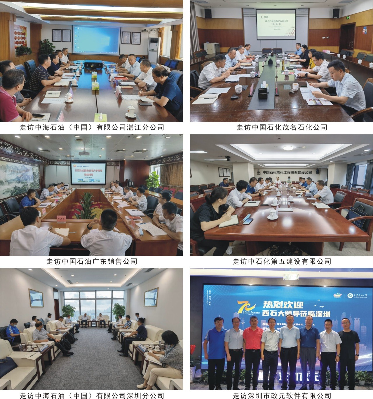 7月26日至8月1日,校党委副书记、纪委书记、监察专员李延平带队先后走访了中海石油(中国)有限公司湛江分公司、中国石化茂名石化公司、中国石油广东销售公司、中国石化第五建设有限公司、中海石油(中国)有限公司深圳分公司、深圳市政元软件有限公司(校友企业)等6家企业。