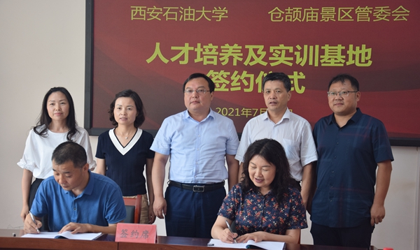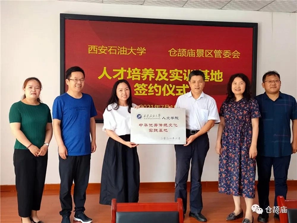 为深入贯彻习近平总书记在庆祝中国共产党成立100周年大会上的讲话精神,更好地发挥中华文明在“人类文明新形态”建设中的作用,提高beat365人才培养的实践能力,7月19日,杨战社副校长带领人文学院师生先后赴白水县仓颉庙景区管委会和富平县文化馆,举行了beat365英国官方网站人才培养及实训基地挂牌仪式。