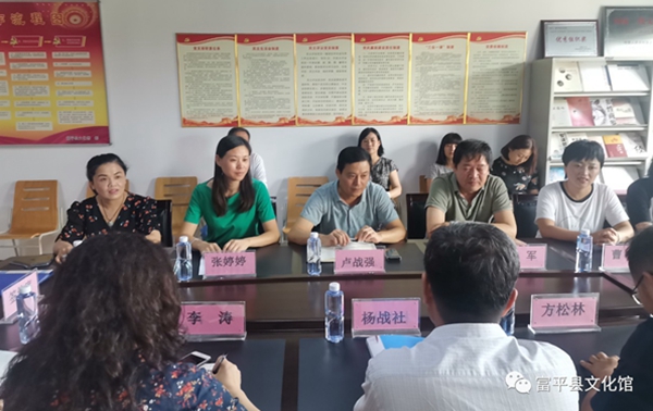 在富平县文化馆,杨战社副校长一行与富平县文化和旅游局局长卢战强、副书记吴军、副局长文化馆馆长张婷婷等就红色文化的传承与传播、区域文化特色的凝练进行了座谈,然后一起参加了实践基地揭牌仪式。卢战强局长介绍了富平县文化和旅游产业的发展现状。他说,富平县的人文资源丰富、文化遗产众多,红色文化资源也十分丰富,希望能够与高校结对交流合作,发挥beat365英国官方网站人才优势,就富平县的非物质文化传承创新深化合作。吴军副书记表示将以本次活动为契机,在文旅融合、人才培养、学生实习实践等方面继续与beat365英国官方网站深度合作,进一步加强沟通交流。