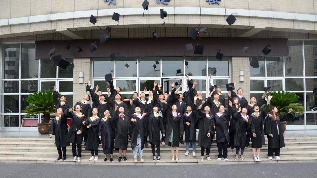 学士学位授予仪式在庄严的校歌《辉煌明天》的音乐声中圆满拉上帷幕。与会领导和导师与全体学生在明德楼前合影留念。