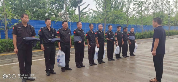 7月9日上午,下发救援物资,调整分配保安队伍力量配置。