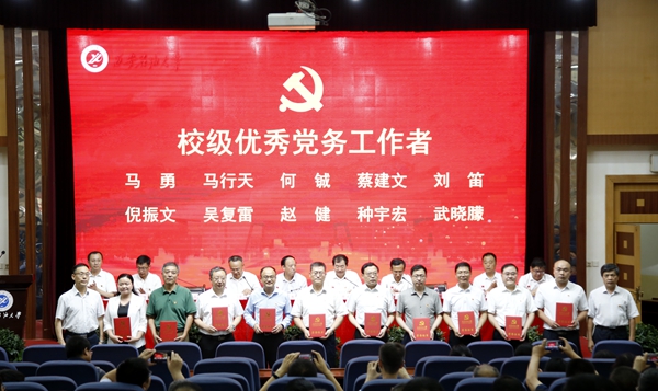 7月6日下午,学校学习贯彻习近平总书记“七一”重要讲话精神暨“两优一先”表彰大会在雁塔校区学术报告厅隆重举行。全体党员校领导、处科级党员领导干部,“光荣在党50年”老党员代表,教工党支部书记、学生党支部书记代表,受表彰的先进基层党组织主要负责人、优秀党务工作者、优秀党支部书记、优秀教工党员、优秀学生党员代表约300余人参加大会。大会由校长、党委副书记李天太主持。