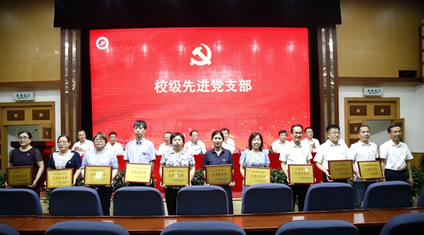 学校党委获陕西高校先进校级党委,地球科学与工程学院党委获陕西省先进基层党组织,电子工程学院党委、化学化工学院化学工程系教工党支部获陕西高校先进基层党组织,马勇、刘科满、周静和侯琦等四名同志获陕西高校优秀共产党员,赵健和种宇宏等二名同志获陕西高校优秀党务工作者;石油工程学院党委等5个集体获校级先进院(系)级单位党组织、石油工程学院油气藏工程教工党支部等38个支部获校级先进党支部、马勇等10名党务干部获校级优秀党务工作者、蔡文斌等32名同志获校级优秀党支部书记、谢青等306名同志获校级优秀共产党员。大会为到场的12名老党员颁授“光荣在党50年”纪念章、为受到表彰的46个先进集体和个人代表进行颁奖。地球科学与工程学院党委书记马行天、党政办公室主任赵健、电子工程学院仪器系党支部书记刘科满、化学化工学院学生吕诗怡分别代表受表彰的先进集体和优秀个人作了发言。