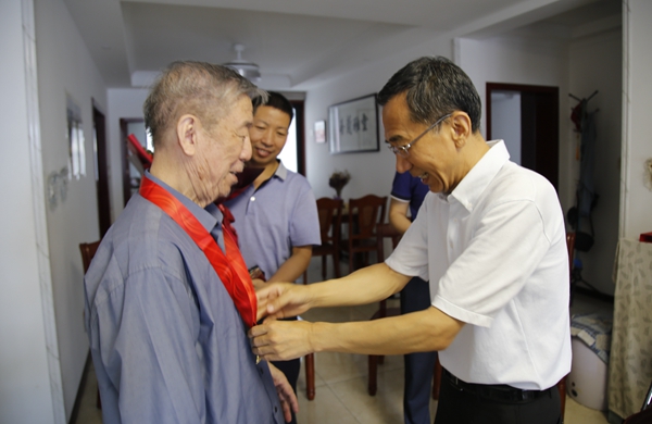在“庆祝中华人民共和国成立70周年”纪念章获得者、离休干部薛纪元家中,校党委书记赛云秀为薛纪元和姚桂荣夫妇佩戴了“光荣在党50年”纪念章,仔细询问了他们的身体健康状况和生活情况。他指出,在建党100周年之际,党中央决定颁发“光荣在党50年”纪念章,体现了以习近平同志为核心的党中央对老党员的政治关怀,体现了党和人民对老党员历史贡献的充分肯定,希望他们保持愉悦身心、安享晚年生活,并积极为学校提出宝贵意见建议,助力学校改革发展。随后,赛书记慰问了“庆祝中华人民共和国成立70周年”纪念章和“中国人民志愿军抗美援朝出国作战70周年”纪念章获得者董玉田、李秋华夫妇和困难老党员陈宝江,并为他们佩戴了“光荣在党50年”纪念章。在陈宝江同志家中,赛书记亲切询问其身体状况、家庭收入、医药费报销情况以及生活中存在的困难和问题,叮嘱相关部门要多关心老党员的生活,帮助他们解决实际问题。
