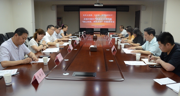 百年风华正茂时,风雨同舟谱华章。在中国共产党百年华诞即将到来之际,为回顾党的光辉历史、歌颂党的丰功伟绩,坚定各民主党派等统战成员勠力同心、共襄伟业的理想信念,6月28日下午,在明德校区第一会议室,由党委统战部组织,学校各民主党派、无党派人士、侨联、知联会、留联会负责人齐聚一堂,隆重召开庆祝中国共产党成立100周年暨“同心向党、同舟共济”专题座谈会。校党委副书记雷西合出席座谈会并讲话。校党委委员、统战部部长吴复雷主持会议。