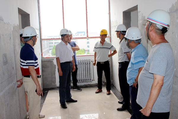 杨战社副校长一行先来到19#20#学生公寓楼项目工地,目前工程已进入收尾的攻坚阶段。在施工现场,杨战社副校长重点对工程的质量及安全措施进行了检查。他强调:项目部及监理单位要进一步强化对安全生产的重视,严守安全红线,严格落实监管职责,杜绝一切安全生产责任事故发生;暑期高温炎热,施工人员及管理人员一定要做好防暑降温工作;在保证质量、安全的前提下,确保按期竣工验收、投入使用。