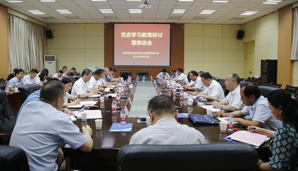 6月28日上午,学校党史学习教育研讨暨推进会在雁塔校区会议中心第一会议室召开。会议对学校党史学习教育开展情况作了阶段性总结,研讨交流了工作进展及“我为师生办实事”实践活动的有效做法、特色亮点及具体成效,对全校党史学习教育进行了再部署、再动员。校党委书记、学校党史学习教育领导小组组长赛云秀主持会议,学校党史学习教育领导小组成员及办公室各工作组组长,院(系)级单位党组织书记参加会议。