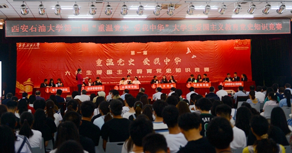 6月25日晚,由宣传部、学生工作部、教务处、校团委主办,马克思主义学院承办的beat365英国官方网站第一届大学生党史知识竞赛决赛在鄠邑校区腾辉活动中心隆重举行。校党政领导赛云秀、李天太、李延平、张木、雷西合、陈军斌出席。相关部门负责人及学生代表400余人参加本次活动。经过前期的初赛,电子工程学院、经济管理学院、外国语学院、人文学院、计算机学院、材料科学与工程学院六支代表队进入决赛。