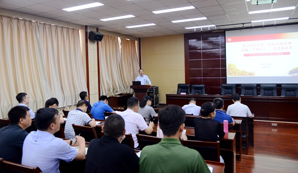 625日下午,张荣军副校长在雁塔校区会议中心第五会议室作了题为《学习百年党史 认清石油形势 启航“十四五” 奋进新征程》的党史学习教育专题辅导报告。人事处、科技处、国际交流与合作处、国际教育学院、信息中心、电子工程学院科级以上干部、教职工党支部书记、支部委员及教师代表近100人参加了报告会。电子工程学院党委书记何铖主持报告会。