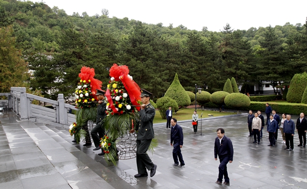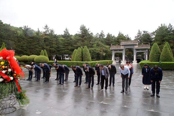 6月16日,细雨蒙蒙,学校党委中心组成员来到寨子湾陕甘边苏维埃政府、军委旧址,了解刘志丹、谢子长、习仲勋等老一辈无产阶级革命家的革命事迹,回顾陕甘边区革命斗争的光辉历程,接受革命历史传统教育,汲取革命精神力量。大家缓步走到南梁镇荔园堡南梁革命烈士纪念碑前,校党委书记赛云秀,校长李天太分别代表学校党政向陕甘边革命烈士纪念碑敬献花篮,所有人员向创建陕甘边革命根据地的英烈们三鞠躬,瞻仰南梁革命烈士纪念碑,缅怀革命先烈的不朽功绩。在纪念碑前,由校党委书记赛云秀领誓,党委中心组全体同志面对党旗重温入党誓词,回顾入党时的铮铮誓言。
