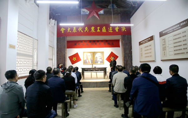 在参观学习之前,中心组成员集体听取了由南梁红色景区办公室主任张全钰所上的专题党课。半个多小时的时间里,张老师从“陕甘边区革命斗争史、‘两点一存’(落脚点、出发点、硕果仅存)主要内涵、南梁精神的主要内容”等三个方面,为全体中心组同志上了一堂党史学习教育专题党课,让大家深刻体会到了苦难中铸就辉煌、挫折后毅然奋起、探索中收获成功、失败后拨乱反正、转折中开创新局、奋斗后赢得未来的艰辛过程。