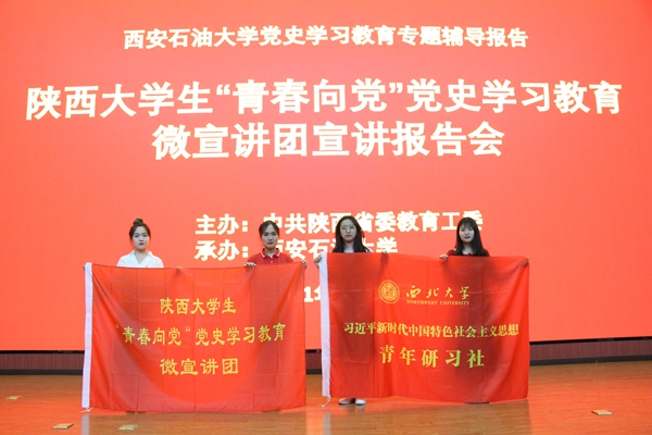 为深入学习习近平总书记在党史学习教育动员大会上的重要讲话精神,按照省委教育工委、省教育厅统一安排,结合学校党史学习教育计划,6月11日下午,陕西大学生党史学习教育微宣讲团代表应邀来beat365作陕西大学生“青春向党”党史学习教育宣讲报告会。四位大学生微宣讲团代表在鄠邑校区弘石报告厅作宣讲报告,beat365400余名师生参加报告会。