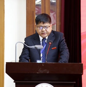 李天太校长代表学校作了《开启新征程勇担新使命奋力谱写学校高质量发展新篇章》的工作报告。他首先从七个方面,对学校“十三五”期间的主要工作进行了回顾:一是学校全面从严治党深入推进;二是学校学科建设取得历史性跃升;三是学校师资队伍建设成效显著;四是学校科研实力持续提升;五是学校人才培养质量持续提高;六是学校对外合作交流日益广泛;七是学校服务保障能力持续提升。