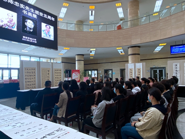 追思会后,举办了纪念陈忠实先生书画展,展出了beat365师生为缅怀陈忠实先生而创作的书法、绘画和雕塑作品。程永清副校长现场为获奖作品颁奖,鼓励大家创作出更多的优秀作品,让先生的风骨成为滋养石油学子的精神力量,在校园里传承和弘扬。