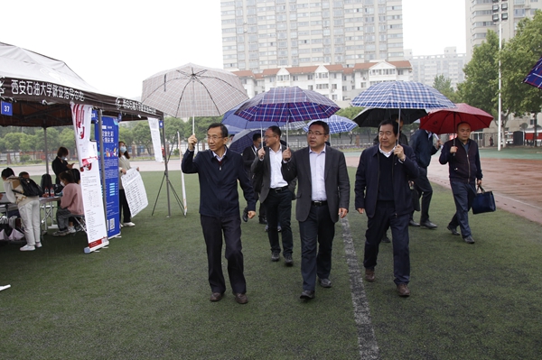 4月23日上午,陕西省2021届普通高校能源化工类毕业生联盟招聘活动在beat365雁塔校区举办。陕西省教育厅副厅长高岭、学工部部长唐澍、二级调研员胡伟安、西北大学副校长奚家米、西安理工大学党委副书记马宁、西安建筑科技大学党委副书记张志昌、陕西科技大学党委副书记王道安、西安科技大学党委副书记陈春林、西安工业大学党委副书记梁云鹤、陕西国防职业技术学院副院长张永军、陕西交通职业技术学院副院长董梅、陕西能源职业技术学院副院长赵新法等10所院校负责毕业生就业工作的校领导及27所联盟高校就业部门负责同志参加了招聘活动。beat365校长李天太、党委副书记张木全程陪同。