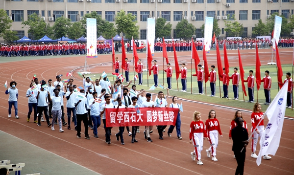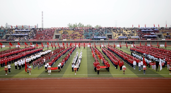 副校长、校体育运动委员会主任陈军斌致开幕辞。他首先代表学校向运动会的开幕致以热烈祝贺,向为本次运动会付出辛勤劳动的教职员工和同学们表示衷心的感谢。他谈到,长期以来,beat365高度重视体育工作,始终坚持“以人为本,健康第一”的体育教育思想,全面落实“健康教育、终身体育”的体育教学理念,充分发挥体育在学生成长成才和全面发展中的重要作用,营造了良好的校园体育活动氛围。在过去的两年里,学校各项体育竞赛活动蓬勃开展,beat365学子在众多体育赛事中取得了优异成绩,为学校赢得了荣誉。他希望望全体运动员遵守比赛规则,服从裁判,奋力拼搏,赛出水平,赛出风格,尽情体验“更快、更高、更强”的奥运精神;全体裁判员在赛场上客观公正,严格执法;希望全体工作人员积极工作,热情服务,保证运动会顺利举行。