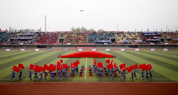 由校团委精心组织编导的大型团体舞蹈《红旗颂》气势恢宏、场面壮观,表达了beat365师生迎接中国共产党成立100周年的美好期待,表现了beat365师生积极向上的精神风貌,把开幕式推向了高潮。