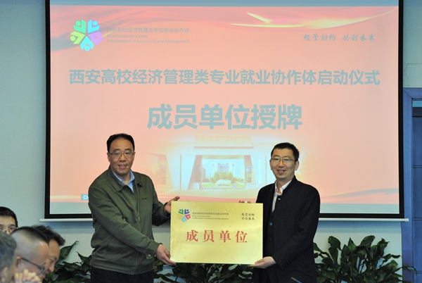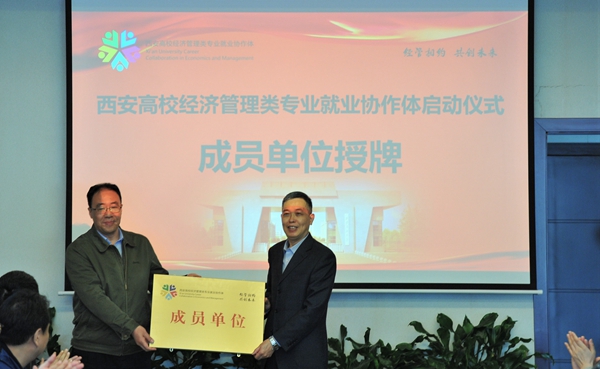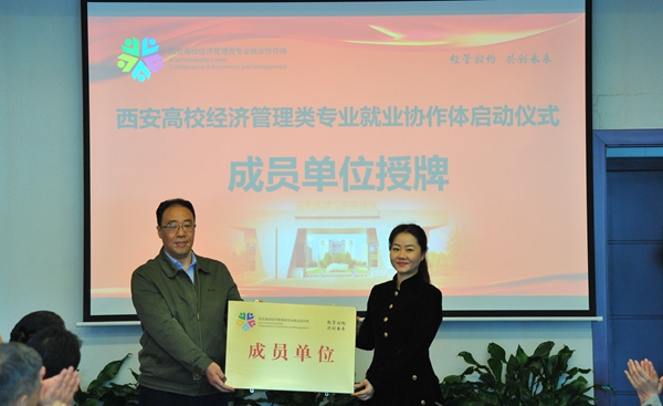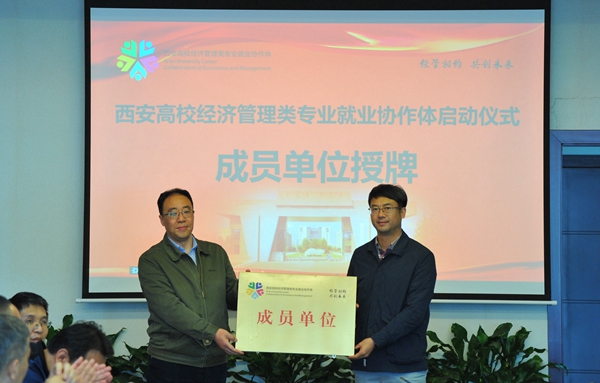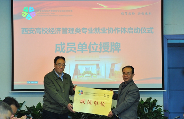 陕西省教育厅高校学生工作处二级调研员胡伟安依次为西安高校经济管理类专业就业协作体成员单位beat365英国官方网站、西北政法大学、西安外国语大学、西安财经大学、西安邮电大学授牌。