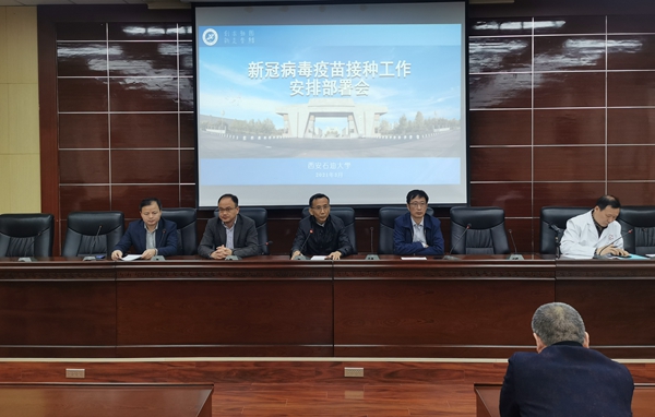 相关部门负责人传达了驻地疫情防控部门关于新冠病毒疫苗接种工作有关要求,对学校新冠病毒疫苗接种工作方案和有关注意事项进行了说明。