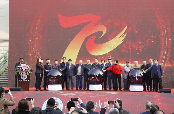 校党委书记赛云秀在仪式上作了致辞。他谈到,七十载砥砺沧桑、滋兰树蕙,七十年峥嵘岁月、春华秋实。建校以来,学校始终坚守“为党育人、为国育才”初心,以“我为祖国献石油”为己任,努力服务国家能源战略需求和区域经济社会发展,人才培养、科学研究、社会服务、文化传承创新和国际合作交流等方面进步显著,办学规模、办学水平、办学层次、办学条件等方面成就瞩目,学校的核心竞争力、整体实力和社会声誉显著提升。