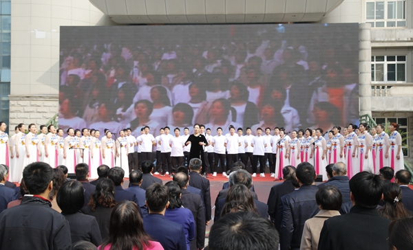 随后,师生进行了精彩的文艺表演。校团委、大学生艺术团表演了古典舞《荷风盛世》、街舞《舞动青春》;音乐系师生表演了歌曲联唱、器乐合奏《阿拉木汗》;国际教育学院的国际学生带来了《土库曼斯坦民族舞蹈》;校工会、教职工舞蹈协会表演了民族舞《山丹丹开花红艳艳》;教授教师合唱团、音乐系启航男声合唱团演唱了《回娘家》。最后,70周年校庆启动暨一号公告发布仪式在校歌《辉煌明天》中圆满结束。