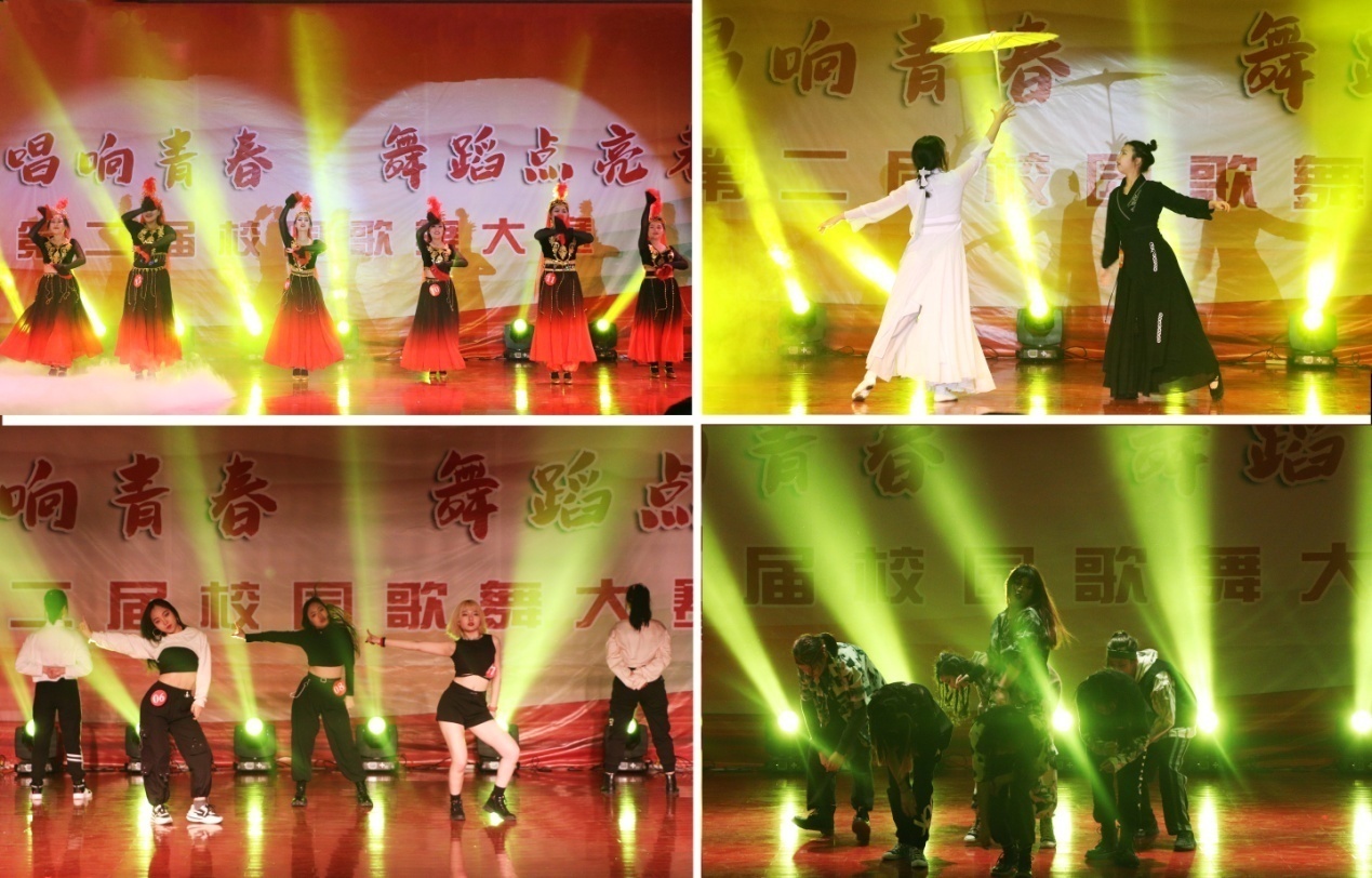 本届校园歌舞大赛总决赛共分为“歌曲大赛”“舞蹈大赛”两个篇章。在歌曲大赛篇章,各参赛选手们落落大方、深情献唱,用音乐诠释情感,用歌声追逐梦想。杜许龙等同学与来自鄠邑区八丈寺小学的帮唱嘉宾合作的《少年锦时》曲调婉转,让大家感受到了“人无再少年”的淡淡情怀;罗昊天与石昌明同学的原创歌曲《错》深情动人,让现场观众沉浸其中;梁芊芊等同学带来的《New York New York》节奏欢快,韵味十足;袁琪景等同学以一声老腔唤醒三秦大地——《给你一点颜色》,将比赛氛围推向了高潮。