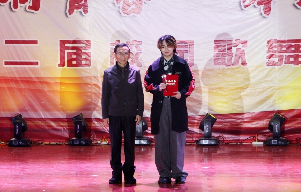 最终,经过激烈角逐,《给你一点颜色》获歌曲组一等奖,《New York New York》《黑猫警长》获歌曲组二等奖,《鸿雁》《故乡山川》《易燃易爆炸》获歌曲组三等奖,《少年锦时》《古风歌曲串烧》《错》《飞云之下》获歌曲组优秀奖;强波蓉、莱丽古丽·伊立哈木获舞蹈组一等奖,胡容榕、卡比热阿·比那尔别克获舞蹈组二等奖,孜拉来·阿不地力木、娜迪热·阿朴杜外力、邵镘毅获舞蹈组三等奖,沈安媞、王一平、王馨蔚、杨怡飞、李蔚然获舞蹈组优秀奖;古兰、邱迪、范嘉欣、张靓、沈轩羽、史阳获优秀导师奖。张木副书记为获奖师生颁奖。