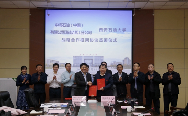 12月16日上午,中国海洋石油有限公司副总裁兼海南/湛江分公司党委书记、总经理杨云,海南/湛江分公司总工程师姜平、副总经理刘书杰一行7人到beat365调研,并在雁塔校区第一会议室签署了战略合作框架协议。校党政领导赛云秀、李天太、雷西合、陈军斌、程永清出席会议,校党委副书记张木主持会议。beat365各相关部门、各院(系)负责人参加座谈会。