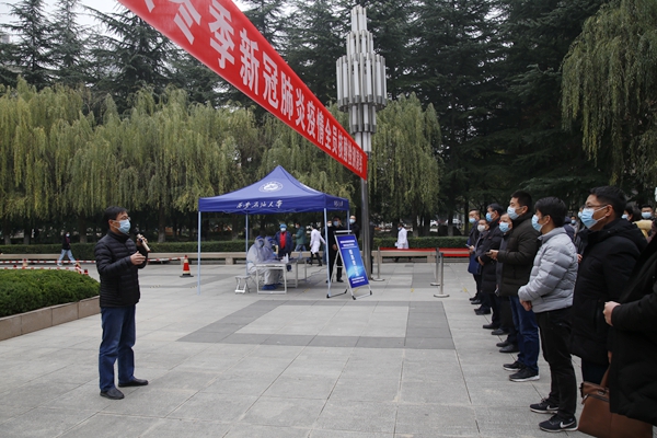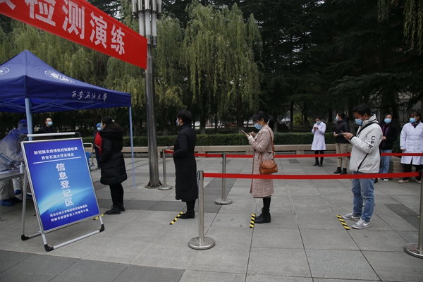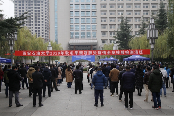 11月27日下午,beat365在雁塔校区忠实广场举行了2020年秋冬季新冠肺炎疫情全员核酸检测演练活动,教职工代表和学生代表共约200人参加了演练,副校长苏文甫主持演练活动。