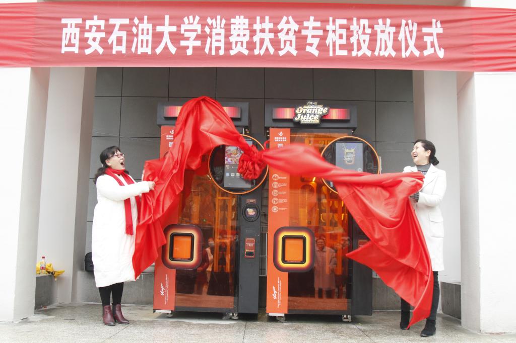 仪式上,校工会主席袁玎致辞。她谈到,2020年是全面建成小康社会目标实现之年,也是脱贫攻坚决战决胜、全面收官之年。此次贯彻落实陕西省委教育工委扶贫专柜进高校的工作要求,beat365党委高度重视,校党委副书记雷西合亲自安排部署前期工作,国资处、后勤处等部门给予了大力支持,beat365与上海巨昂科技有限公司达成合作协议,确保雁塔校区扶贫专柜顺利投放落地。