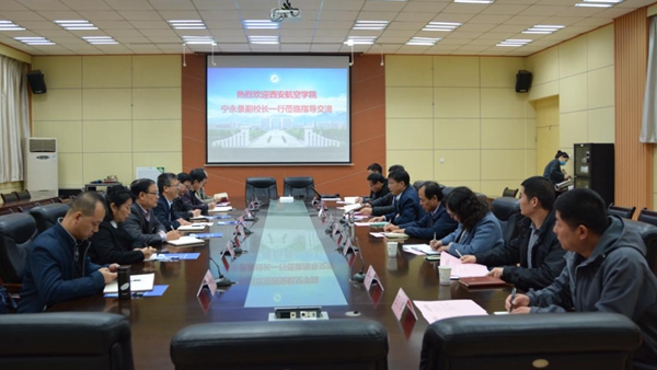 11月20日上午,西安航空学院副校长宁永录一行7人来beat365雁塔校区走访调研,座谈会在第一会议室召开。副校长苏文甫及纪委、工会、国有资产处、基建处、后勤管理处负责人参加座谈会。会前,李天太校长会见了宁永录副校长一行。