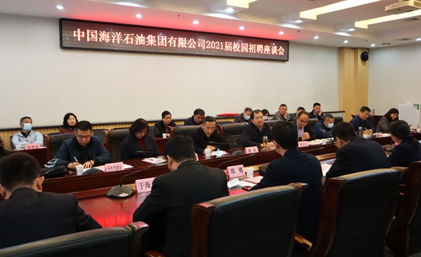 10月14日下午,中国海洋石油集团有限公司人事部来校洽谈2021届毕业生引进工作。座谈会在鄠邑校区第二会议室召开,中海油人事部副总经理周林波,beat365校长李天太、校党委副书记张木出席。中海油相关二级单位人力资源部负责人,beat365相关部门、各院(系)主要负责人参加会议。座谈会由学生工作部(处)长、就业指导中心主任赵健主持。