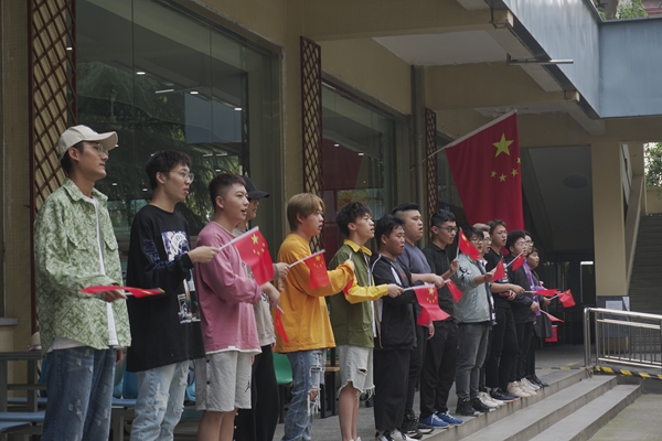 中午12点10分,音乐系100余名师生汇聚到雁塔校区学生餐厅门外。随着《歌唱祖国》音乐旋律响起,大家一边挥舞着手中的五星红旗,一边唱起《今天是你的生日》《辉煌明天》《我爱你中国》三首歌曲。三首歌曲慷慨激昂、振奋人心,表达了beat365师生对祖国的崇敬和热爱之情,展示了beat365师生积极向上的精神风貌。师生们通过“快闪”这样的新颖形式,唱响了热爱党、热爱祖国、热爱学校、热爱生活的主旋律,令人耳目一新,赢得了在场师生的阵阵掌声。