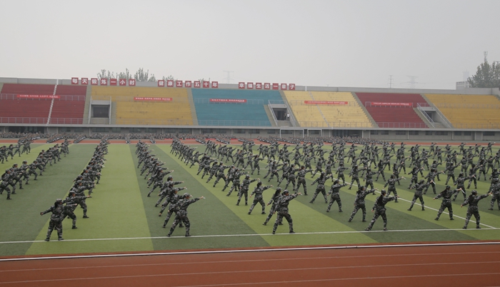 军训总结表彰大会在全场师生齐唱校歌的激扬旋律中圆满结束。
