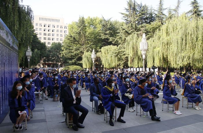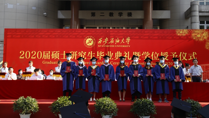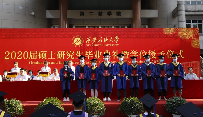 校学位评定委员会主席、校长李天太教授为硕士学位获得者代表授予学位,并颁发学位证书。2020届硕士研究生毕业典礼在《辉煌明天》的校歌中圆满结束。