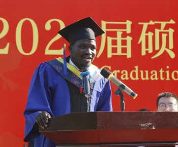 硕士研究生代表、材料科学与工程学院党墨含同学,留学生代表、来自乌干达的石油工程学院罗纳德同学作了发言。
