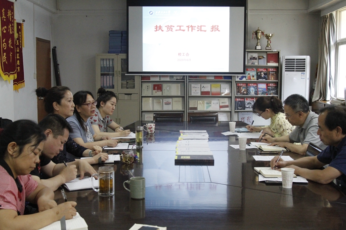 李延平认真听取了汇报,对工会在组织保障、精准施策、工作成效特别是参与扶贫工作的37名帮扶干部和各部门工会在“两联一包”中的结对帮扶、消费扶贫、产业扶贫取得的成效给予了充分肯定。他表示,学校党委高度重视脱贫攻坚任务,校工会积极组织协调落实扶贫措施,精准帮扶、精准施策,助力脱贫攻坚目标任务,取得了很好的成效。希望校工会在教育扶贫中以“双百”工程为平台,持续开展智力、教育、科技、人才、信息、文化、民生、志愿服务工作,扶贫扶智扶志,巩固扶贫成效。