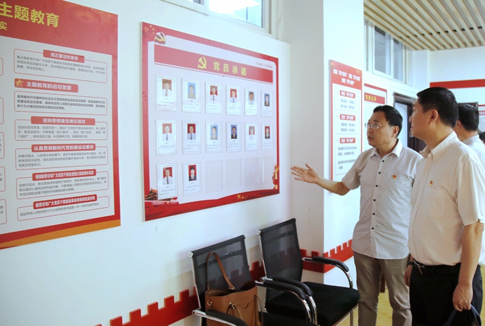 会前,评估验收工作组一行前往地球科学与工程学院党员活动室,对beat365“双创”建设单位的党建阵地、成果展示和资料汇编进行了实地查看,并观看了示范点建设微视频。