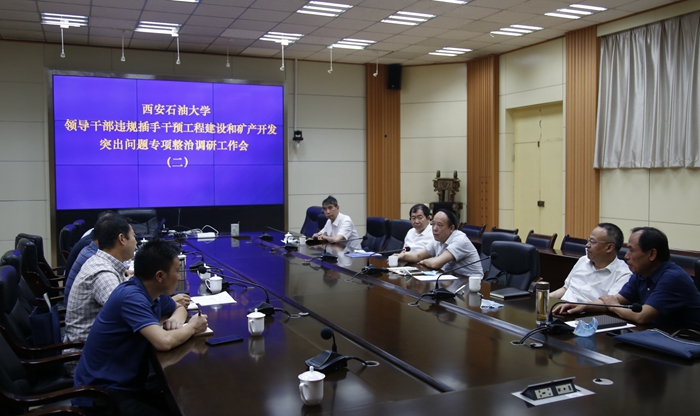 5月29日下午,学校在雁塔校区会议中心第二会议室召开了开展领导干部违规插手干预工程建设和矿产开发突出问题专项整治工作调研。校党委书记赛云秀,校长李天太,校党委副书记、纪委书记、监察专员李延平在党政办公室、纪委监察处负责人陪同下,与基建处、后勤管理处、国有资产处、财务处等部门负责人进行了座谈,调研各单位贯彻落实校党委关于领导干部违规插手干预工程建设和矿产开发突出问题专项整治工作的部署,以及专项整治工作开展自查情况。会议由赛云秀主持。