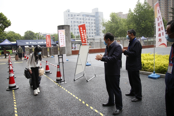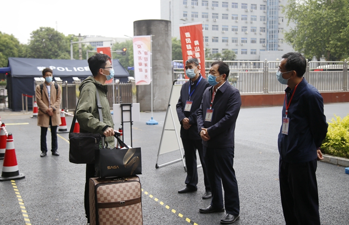 5月7日上午9时,首位返校学生、经济管理学院研究生刘雪梦顺利抵达学校。在现场工作人员的指引下,刘雪梦依次完成了更换口罩、测量体温、行李和手部消毒、核查健康码(绿码)、身份核实等流程后顺利进入校园。校党政领导赛云秀、李天太、张木、李华、苏文甫、程永清先后到报到区迎接返校同学,校领导与同学们亲切交谈,对返校同学表示欢迎,深入了解大家的思想状况、身体状况、假期学习生活、论文撰写情况、就业情况。校领导鼓励同学们坚定战胜疫情的信心,严格落实学校、学院各项疫情防控措施,同时要珍惜最后的校园时光,顺利完成学业任务。