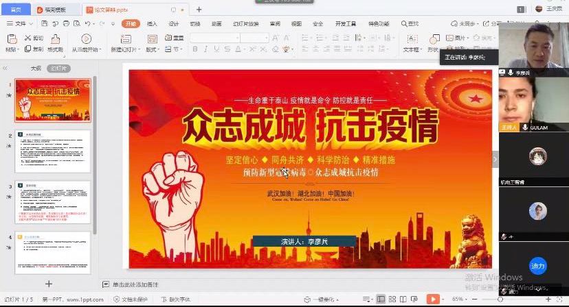 习近平总书记在统筹推进新冠肺炎疫情防控和经济社会发展工作部署会议上强调:“中华民族历史上经历过很多磨难,但从来没有被压垮过,而是愈挫愈勇,不断在磨难中成长、从磨难中奋起。”4月10日,民族生教育管理办公室在腾讯会议平台组织召开了“抗疫情·爱国情”主题教育班会,用大量的抗击疫情中的典型事例和生动素材,深入浅出地阐述了传承爱国主义精神的当代意义和时代价值。经济管理学院国贸1701班古丽努尔·艾则孜同学表示:“通过这次的主题班会我发现生活中很多平凡的人在做着不平凡的事。他们看似普通,却有着最耀眼的光芒,我作为这滚滚洪流中的一叶小舟,也应该有一分热发一分光。”