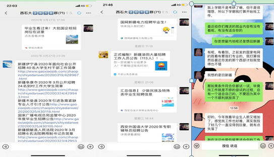 为了缓解2020届毕业生因疫情导致的就业不便,民族生教育管理办公室一方面加大帮扶力度,为毕业生多方搜集、转发各级各类线上招聘信息,目前提供各级各类信息48条。同时,开设线上求职咨询平台,随时随地为民族生有针对性地解答相关就业困惑,为顺利就业提供帮助和指导。